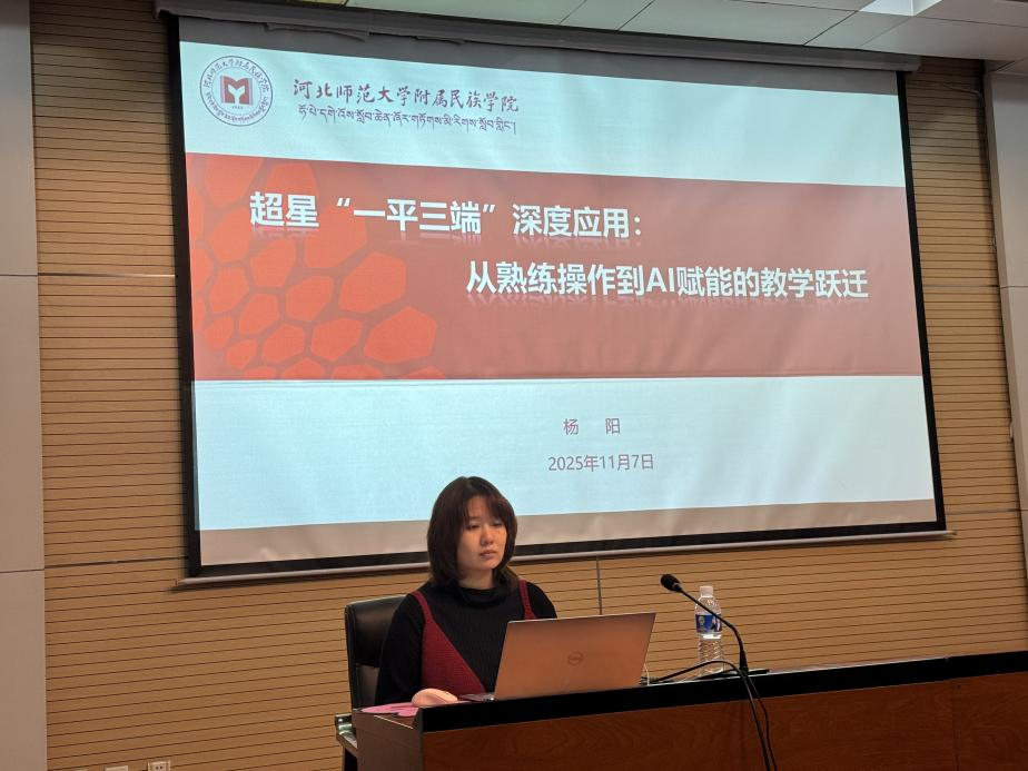 为全面提升教师智慧教学能力,推动课堂教学数字化转型,11月7日下午,437必赢会员中心在报告厅举办民院大讲堂系列活动之“超星‘一平三端’深度应用:从熟练操作到AI赋能的教学跃迁”专题培训。本次培训特邀超星公司技术专家杨阳担任主讲,近70名教师参与。副院长李保堂、乔庆刚出席活动,教务科研处主任肖卓峰主持。