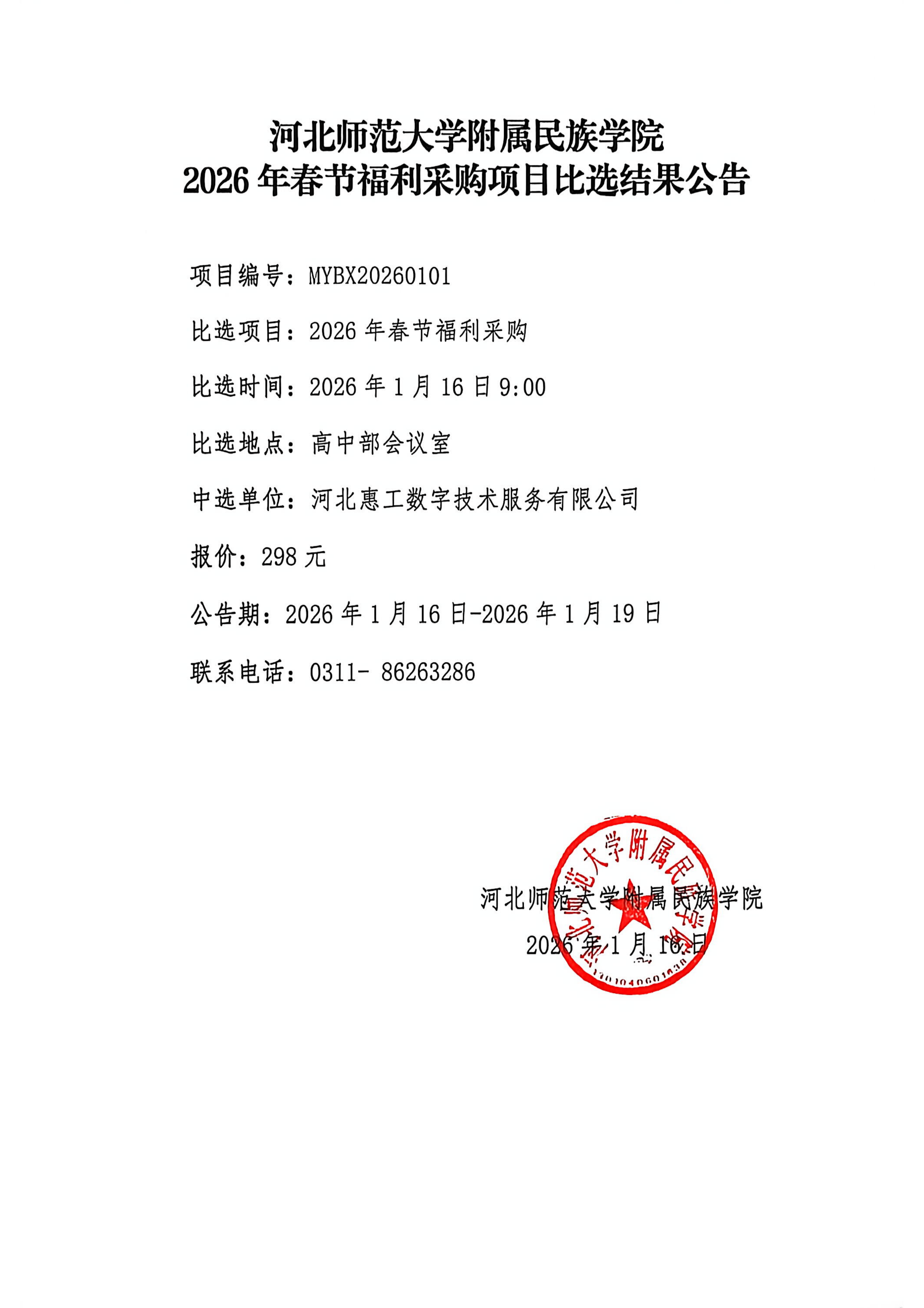 437必赢会员中心2026年春节福利采购项目比选结果公告